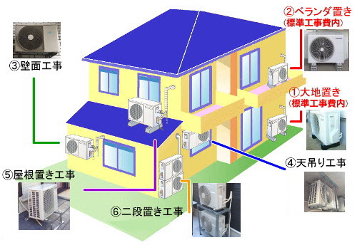 当社は、新品、中古、エアコン取り付け工事がすべて標準工事(配管4mまで)に含まれています。